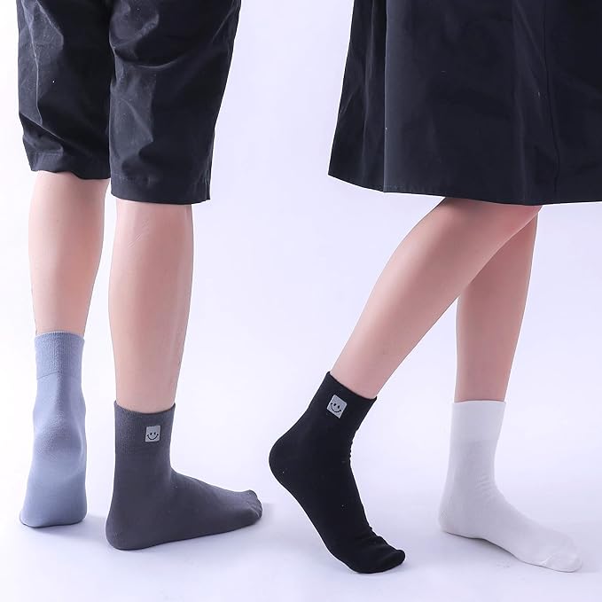 Meet a versatile set designed for real life. These 10 Pairs Women Thin Soft Mini Crew Socks arrive in a convenient multi-pack suited to busy weeks. The knit is soft and thin for year-round use. Quarter height pairs well with sneakers, loafers, or boots. Subtle smile embroidery adds a light, modern accent without overpowering outfits.