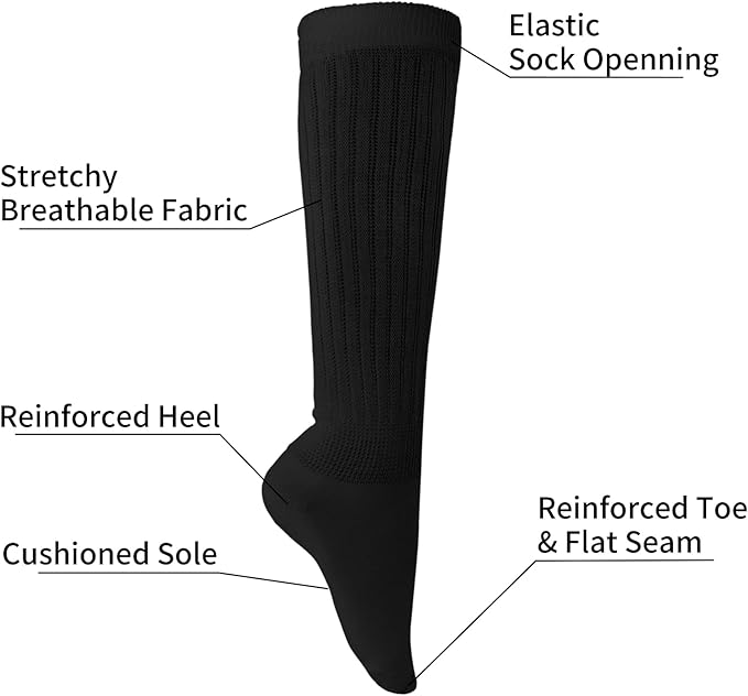 Soft long slouch socks can be styled in multiple ways. Wear them scrunched around your ankles for a classic retro aesthetic, or pull them high for a tall tube sock look. They complement active outfits for gym sessions, themed costumes for parties, and everyday streetwear ensembles.
