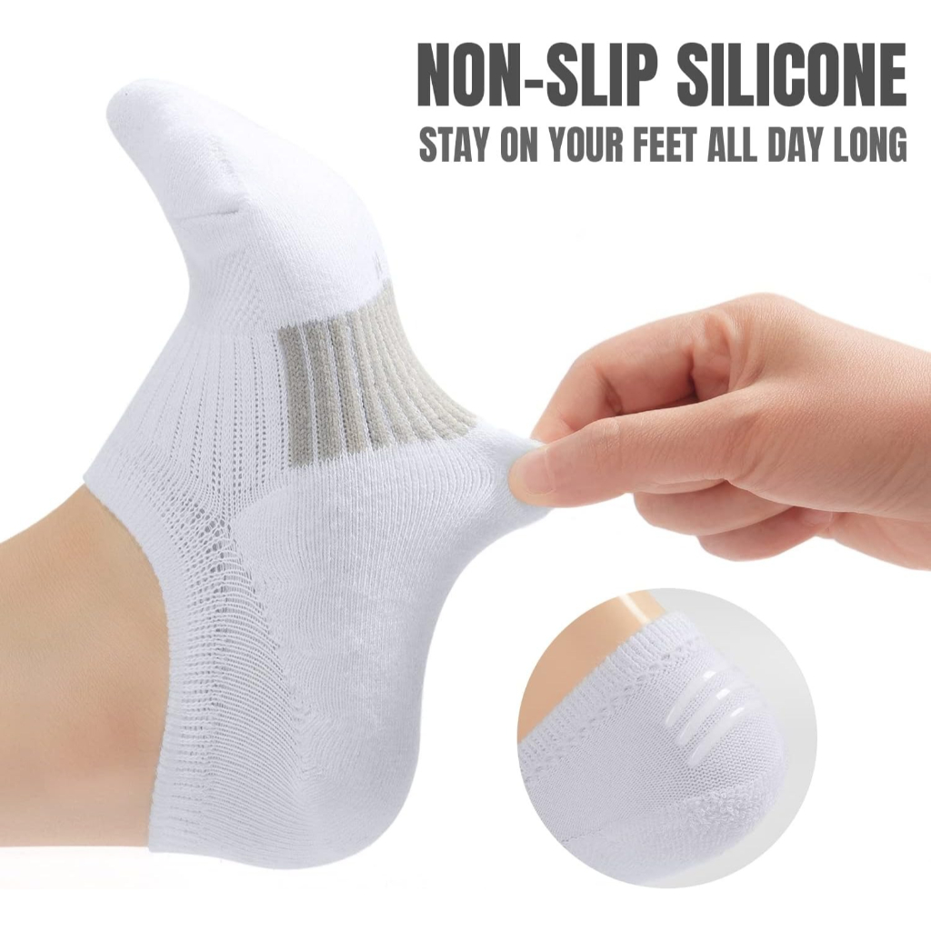The Women Cushioned Running Socks offer consistent structure, comfortable cushioning, and thoughtful design in a pack of five. Created to support activity across various routines, these low cut socks function well with sportswear or casual shoes.