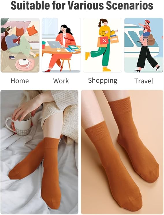 5 Pairs Of Soft Cozy Thin Crew Socks For Women are suitable for daily activities, professional settings, or downtime. Their thin and soft construction makes them an ideal choice for year-round wear. Whether paired with formal attire or casual outfits, these socks provide comfort and versatility.