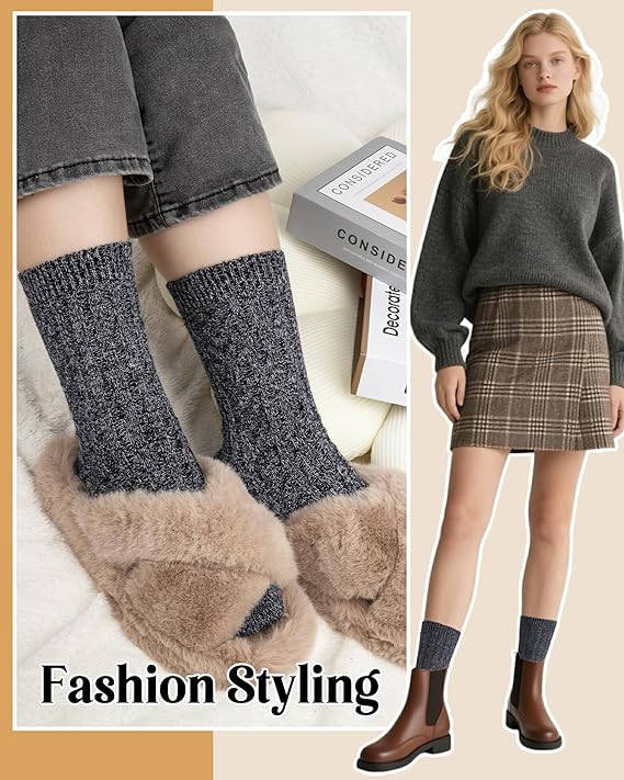 For outdoor days, these wool socks for women support steady warmth. Use them under hiking boots for day paths and park loops. The interior remains soft during longer wear, and the exterior stays tidy under layered outfits. Pair them with thermal leggings, midi skirts, or straight-pillar pants for balanced winter styling.