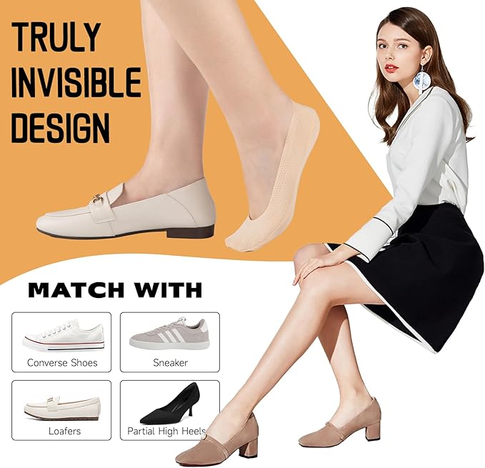 The Women No Show Socks pack includes practical features that add to their appeal: