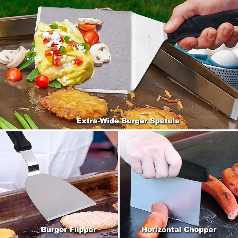Whether preparing breakfast, burgers, stir-fry, or grilled vegetables, this griddle accessories set provides organized and practical tools for every step of the cooking process.