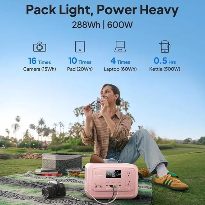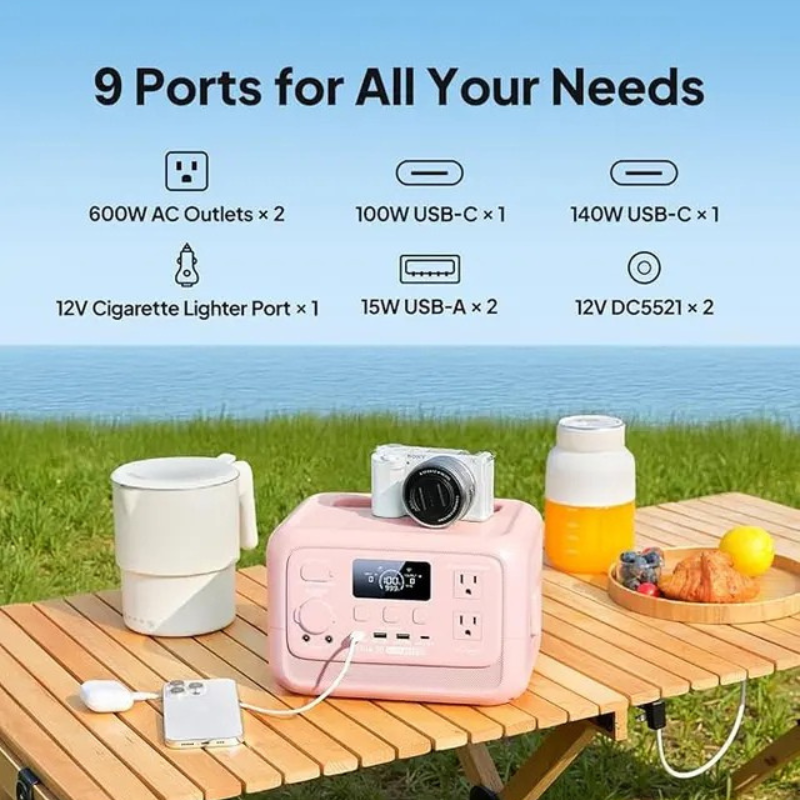 Power Output: 600W, with peak output of 1500W, making it capable of powering small appliances and multiple devices simultaneously.